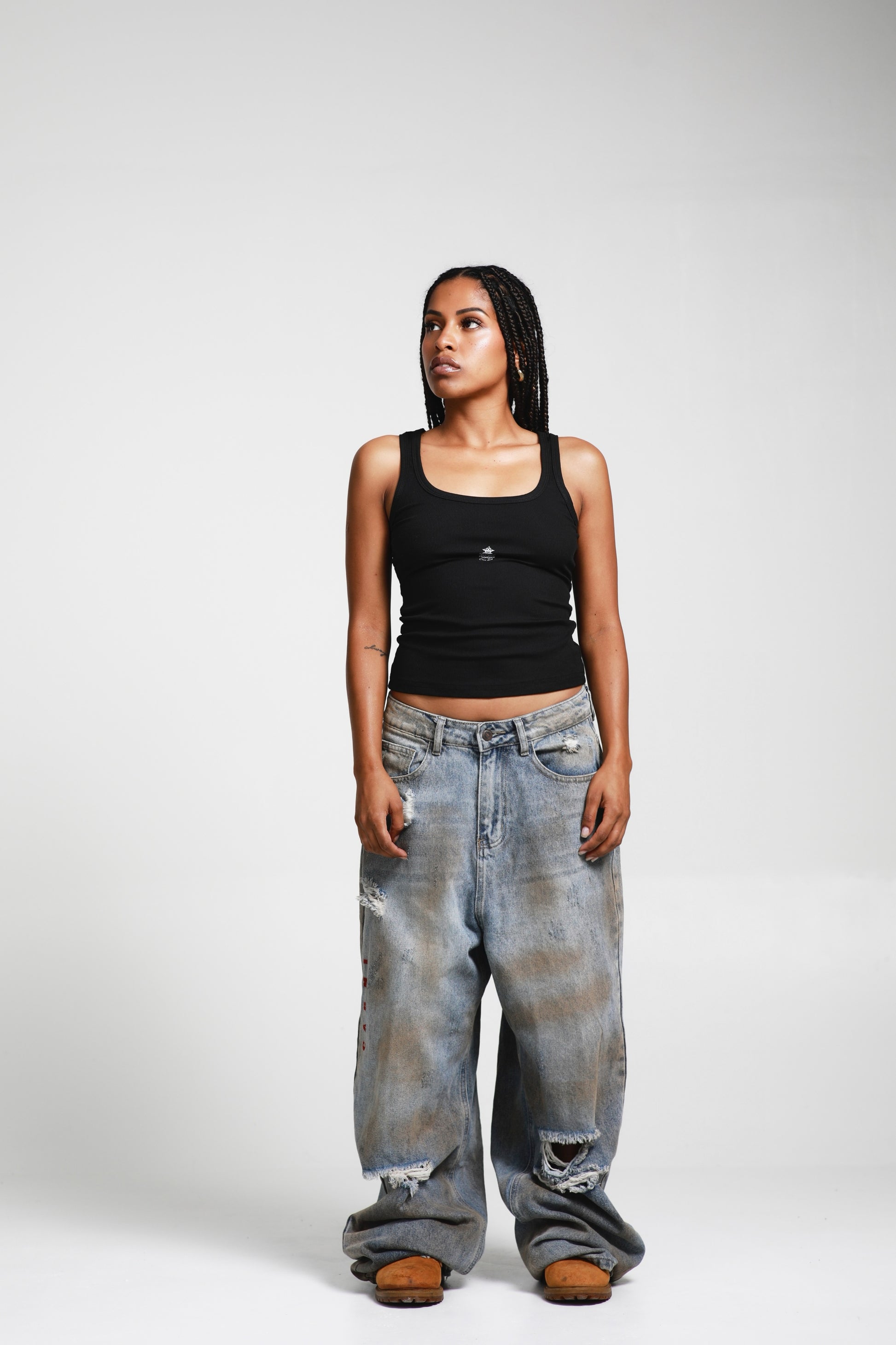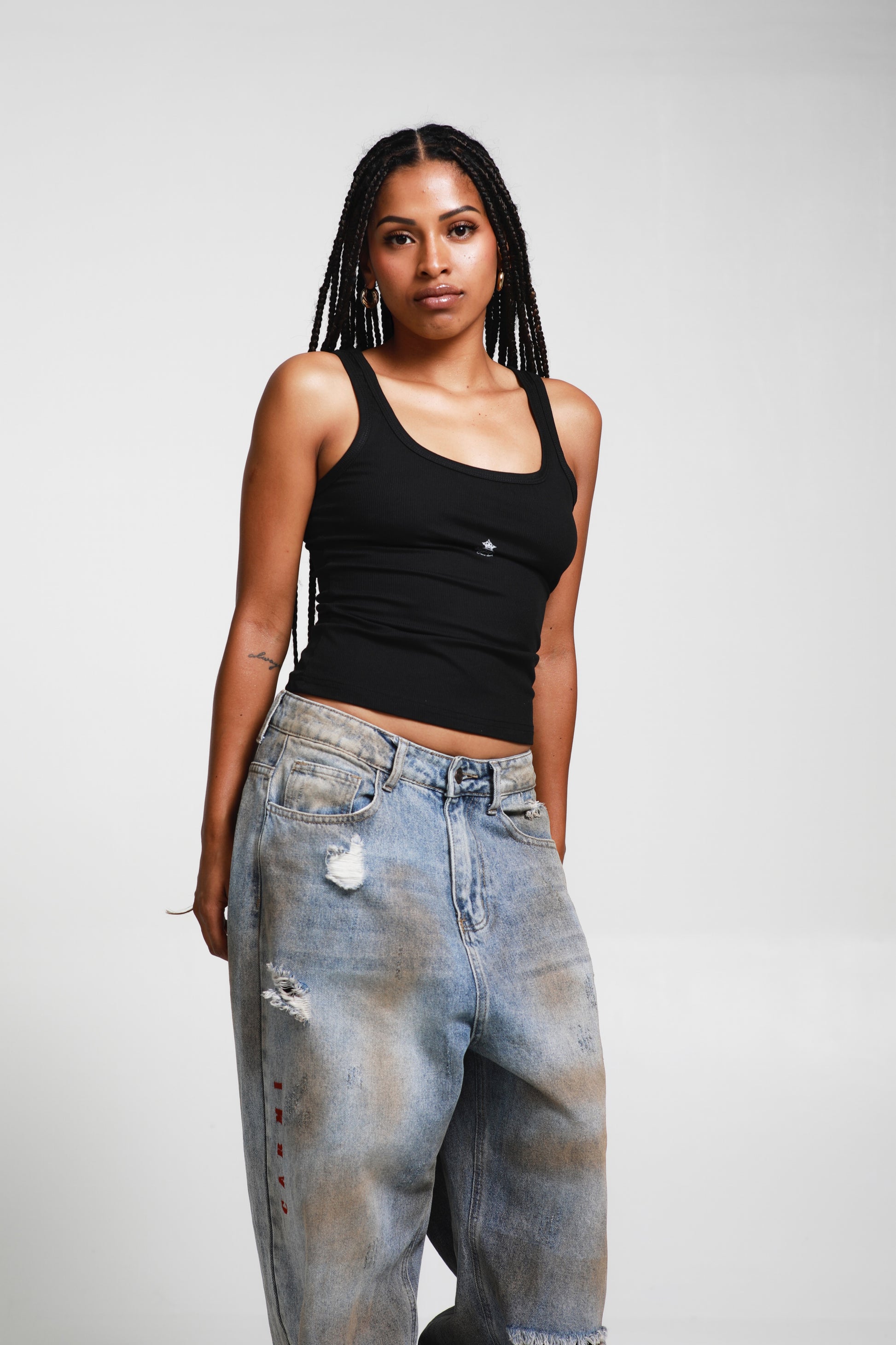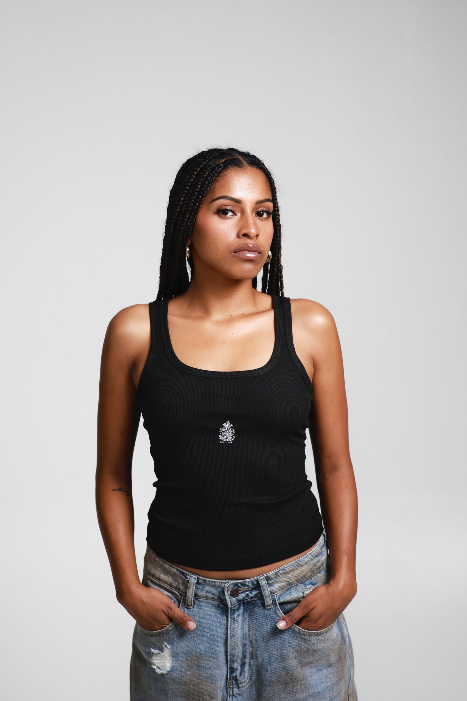A minimal yet powerful piece, this fitted tank top is a must-have for layering or wearing solo. Designed with a flattering cut and subtle embroidered detail at the front, it blends comfort with a bold street aesthetic. Perfect for pairing with baggy jeans, cargos, or under a jacket for a versatile look.
